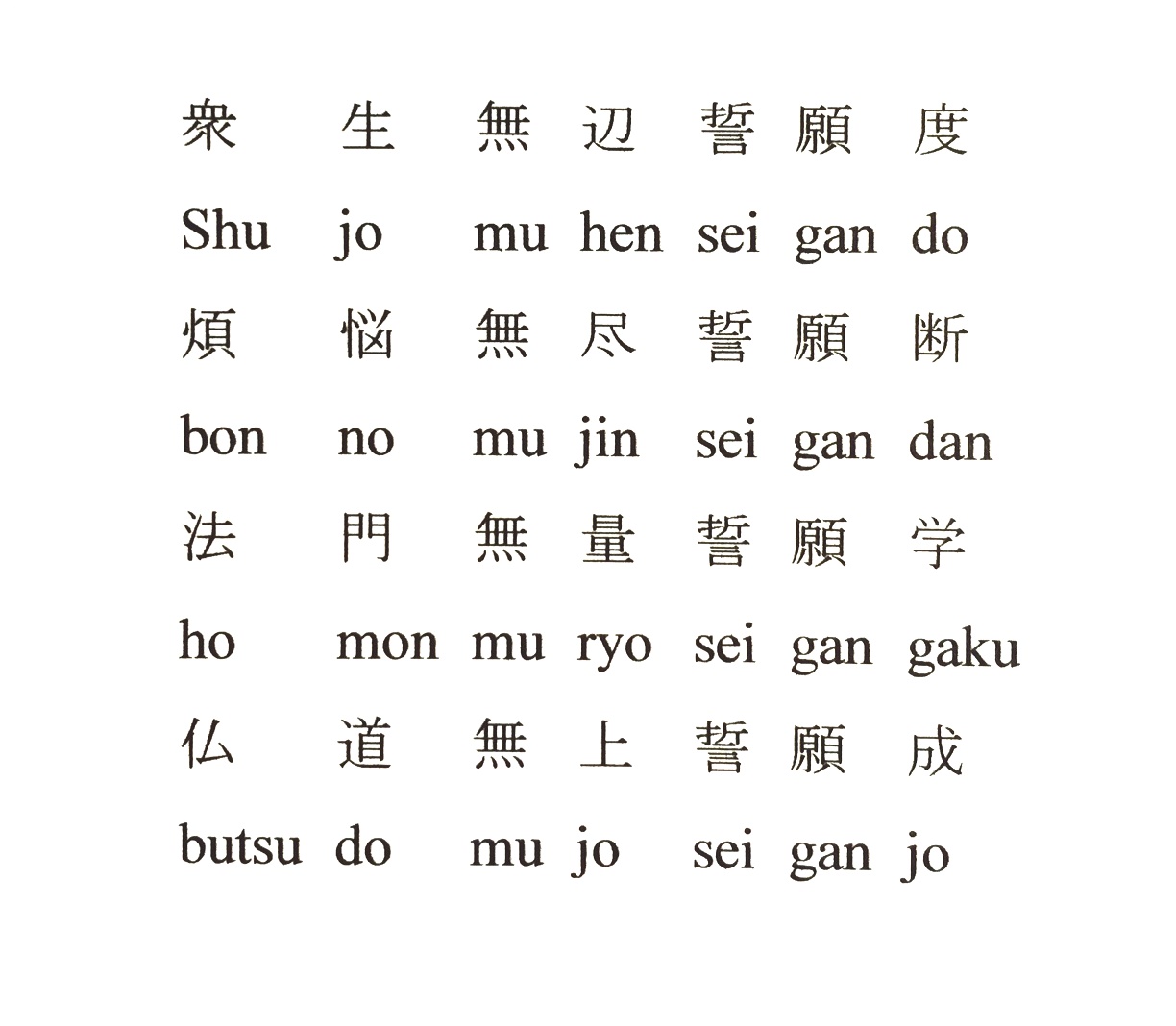 205. Good intentions » The Four Great Bodhisattva Vows, Rinzai Zen version