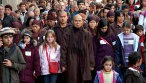 Early one summer morning, two decades ago, I walked with several hundred other people down a sidewalk in Amherst, Massachusetts. Leading our walk was the Vietnamese Zen master Thich Nhat Hanh, who wore the plain brown robes of his monastic order. Walking beside him were the children of participants in our weeklong retreat. In the next row were robed monks and nuns from Plum Village, Thich Nhat Hanh’s monastery in southern France, followed by our own assembled body. Transcending the boundaries of age, class, race, religion, and gender, our diverse group included Jews, Catholic nuns, Protestant clergy, lay Buddhist practitioners, secular professionals, and American veterans of the Vietnam War.